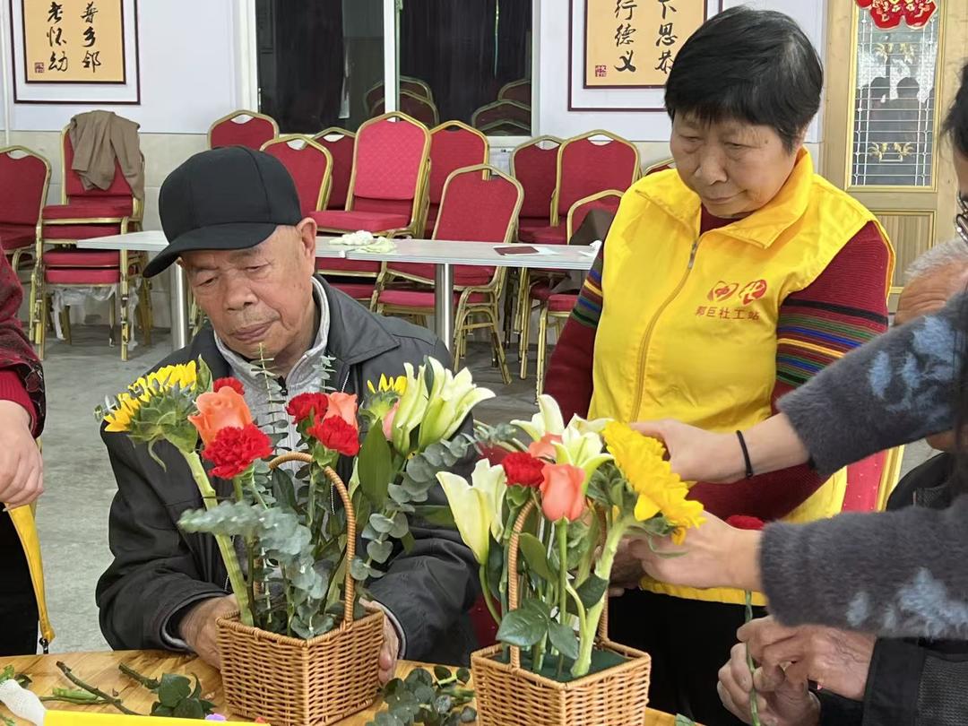 2026年4月2日上午九时,在郭巨街道谢家岙村文化礼堂内,由“银领共融”农村困难老人社区参与提升项目精心组织的“银龄相伴”支持小组第四节——“巧手做花艺”温馨开展。12位村内独居老人热情参与,在花香与...